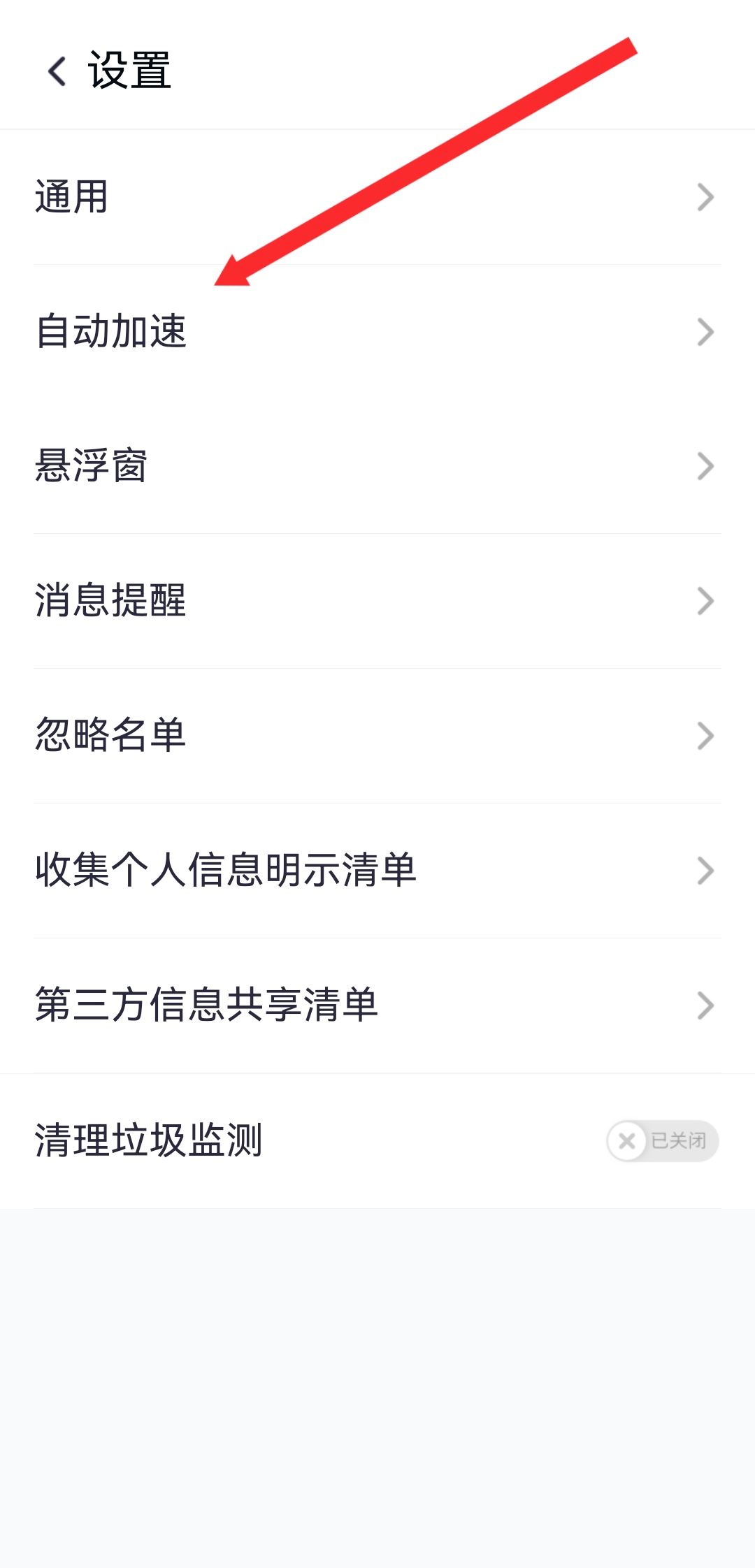 3、在設(shè)置的界面,點(diǎn)擊自動(dòng)加速,進(jìn)入自動(dòng)加速設(shè)置的頁面。