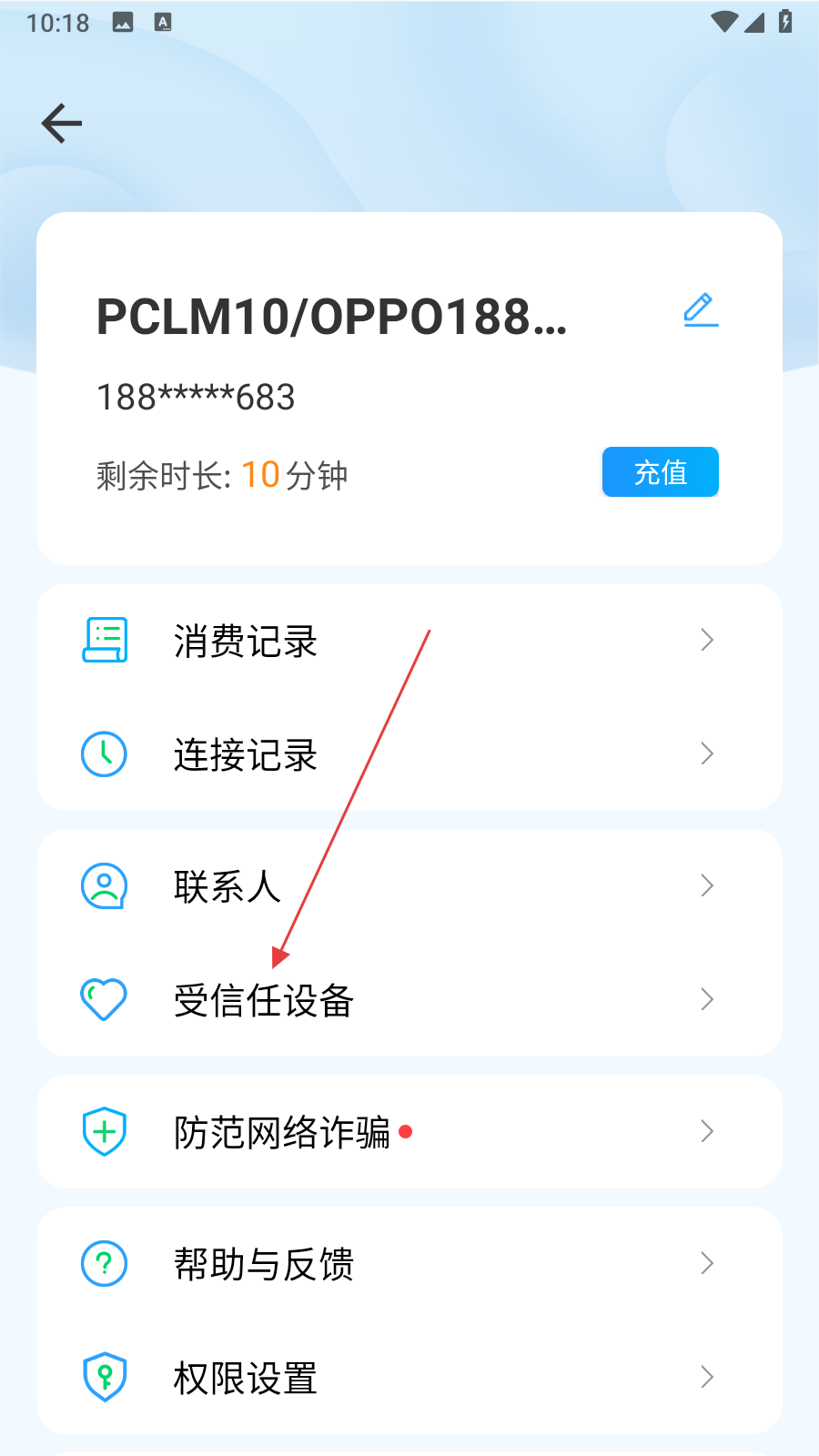 1、打開小X遠程應用,進入個人相關頁面,找到受信任設備選項并點擊。
