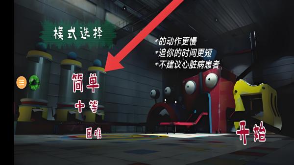 2、在模式選擇界面,可根據(jù)自身能力挑選簡(jiǎn)單、中等或困難模式,簡(jiǎn)單模式下敵人動(dòng)作更慢、追擊時(shí)間短,新手建議先選簡(jiǎn)單。