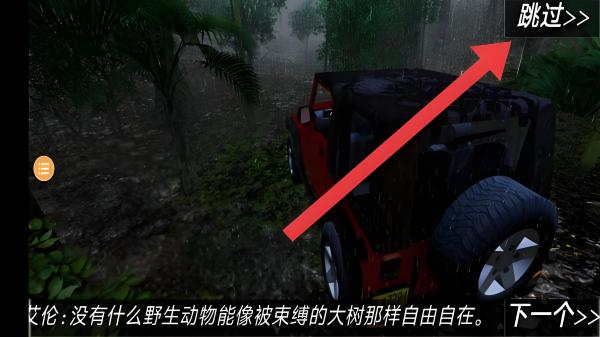 3、面對(duì)雨林場(chǎng)景的劇情展示,點(diǎn)擊右上角跳過(guò)按鈕,快速略過(guò)對(duì)話內(nèi)容,直接進(jìn)入正式游戲階段,推進(jìn)游戲進(jìn)程。
