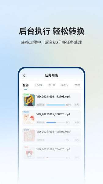 支持全格式視頻任意轉(zhuǎn)換,自由設(shè)置修改視頻分辨率、碼率、幀率等;支持格式:mp4、m4v、mkv、mpg、ts、mpeg、mov、wmv、asf、avi、vob、flv等