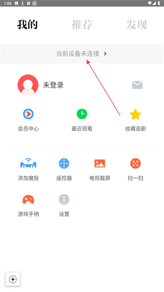 2、進入我的頁面內(nèi),點擊正上方當(dāng)前設(shè)備未連接的按鈕。