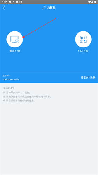 3、進入設(shè)備連接的頁面內(nèi),點擊下方重新掃描的功能按鈕。