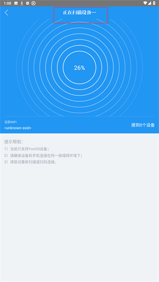 4、當(dāng)頁面顯示正在掃描設(shè)備的提示表示正在掃描,需耐心等待。