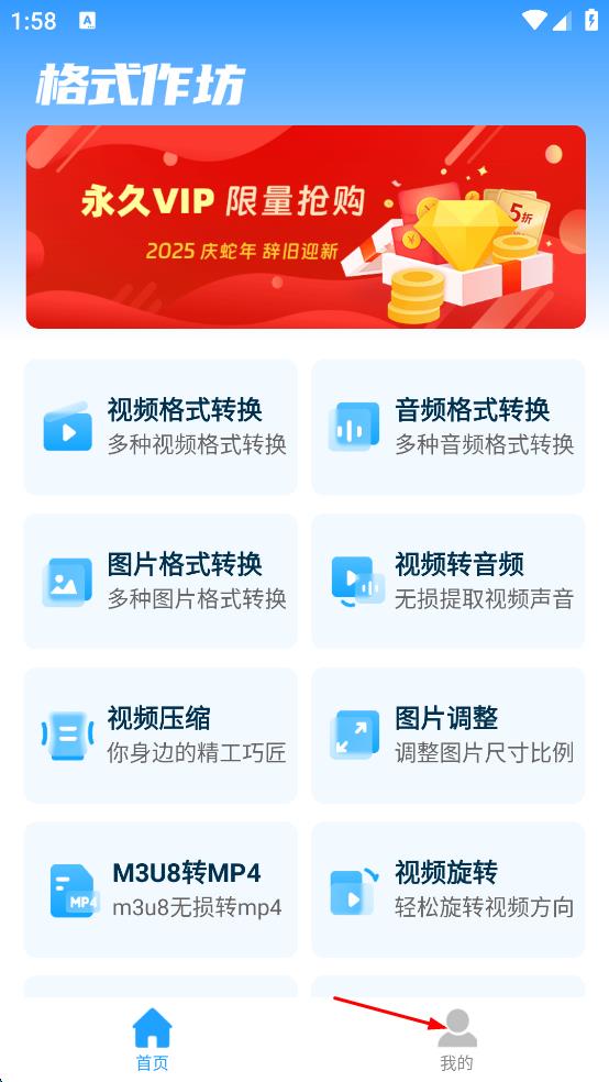 1、打開(kāi)格式作坊軟件,點(diǎn)擊右下角我的,進(jìn)入個(gè)人頁(yè)面。