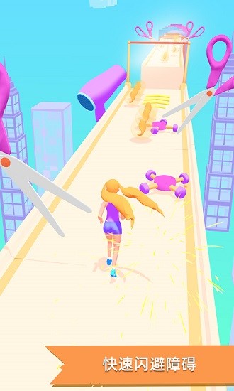 1、操作流暢,測(cè)試玩家反應(yīng)能力,避免各種障礙,并拾起更多頭發(fā);