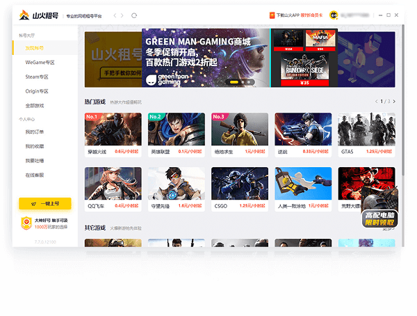 火山租號給喜歡玩游戲的朋友帶來非常方便的賬號租賃軟件,簡單的操作不僅這次會各種熱門游戲還有安全方便的賬號交易以及貼心的客服等等,強大的賬號保護加上各種活動福利低價租號等你來體驗。喜歡的朋友趕緊來下載吧!