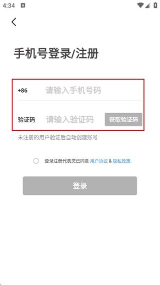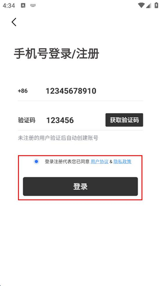 4、勾選登錄注冊代表已同意用戶協(xié)議&隱私政策,點擊登錄按鈕。