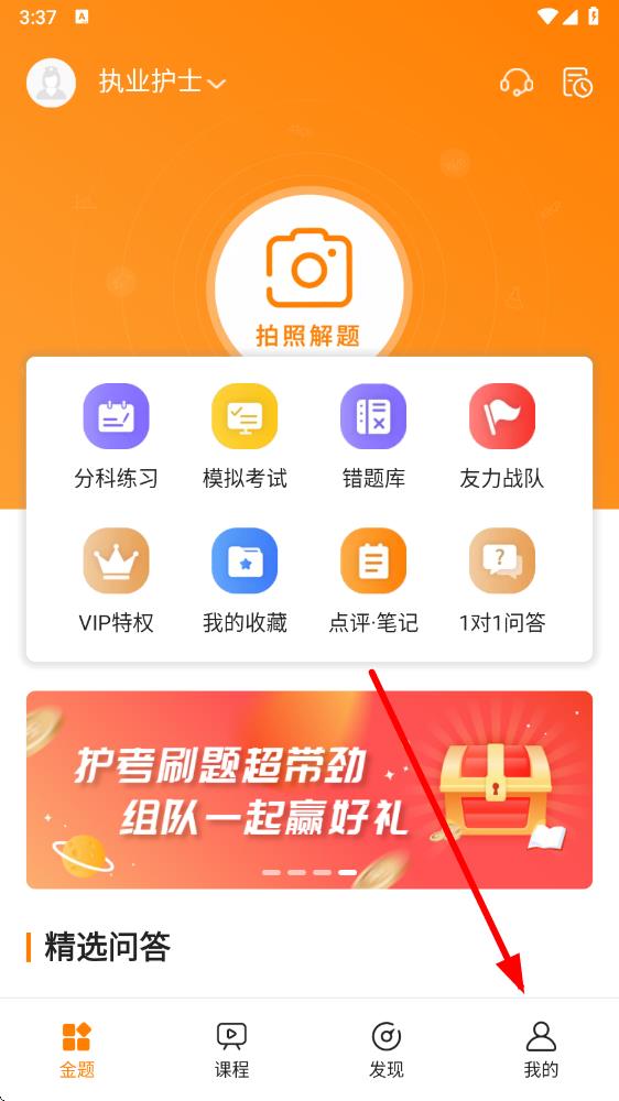 1、打開金題護考app,點擊底部導航欄中的我的,進入個人相關頁面。