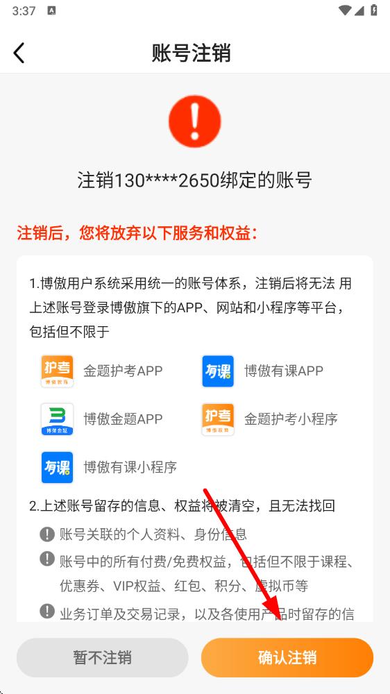 4、在賬號注銷頁面,仔細閱讀注銷賬號后將放棄的服務和權(quán)益說明,確認無誤后點擊確認注銷,按照提示完成后續(xù)操作即可注銷賬號。