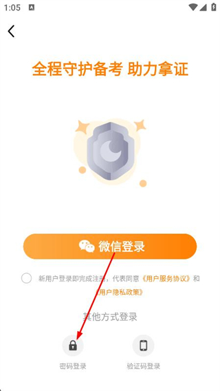 2、在登錄頁面,選擇并點擊下方的密碼登錄。