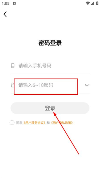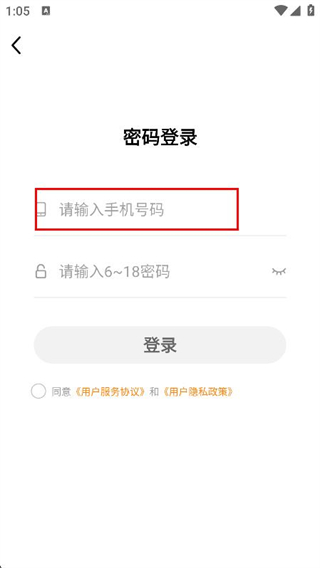 3、在密碼登錄頁面,點擊輸入框輸入手機號。