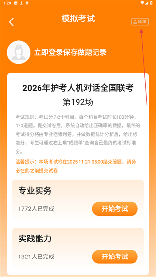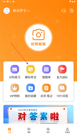 1、打開金題護考APP,進入時點擊模擬考試的按鈕。