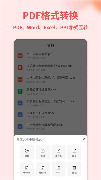 支持將word、excel、ppt一鍵轉(zhuǎn)換成pdf;