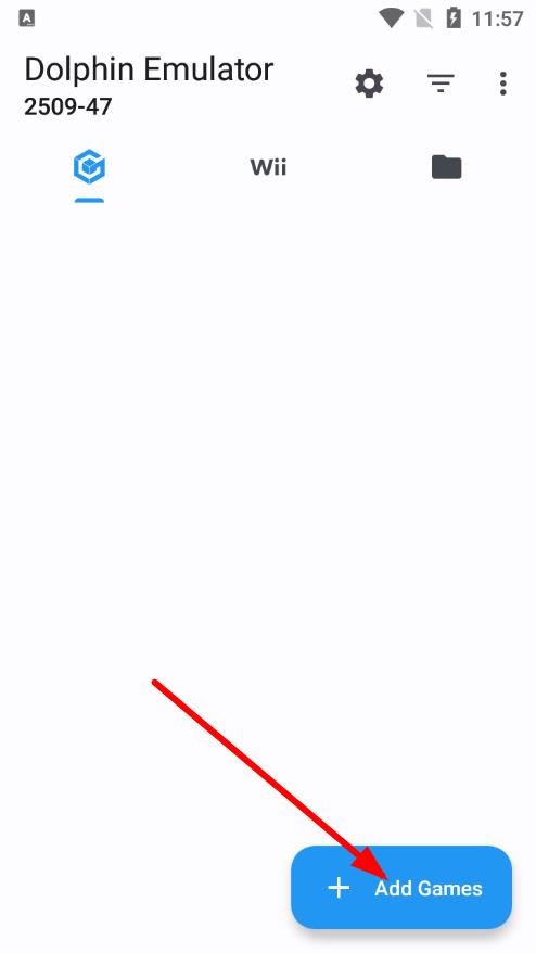 1、打開海豚模擬器,點擊界面下方藍色的+Add Games按鈕。
