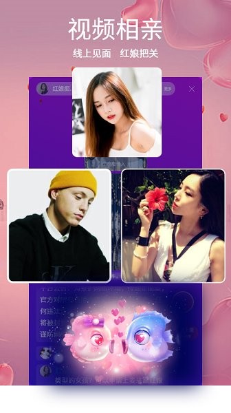 視頻相親:采用1紅娘+1男嘉賓+1女嘉賓的真3人視頻相親模式,紅娘視頻幫你相親,真實交友戀愛,避免尷尬專屬相親!