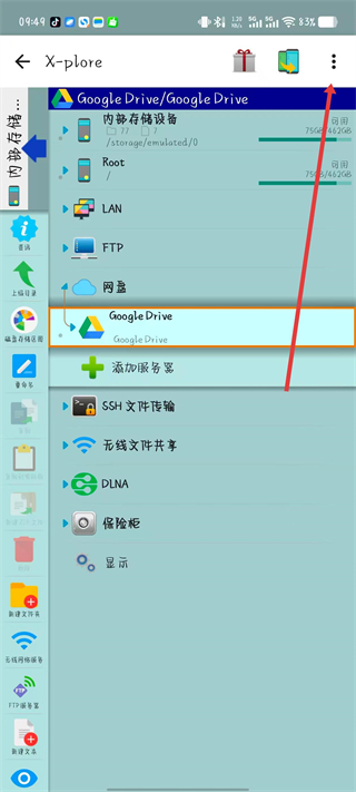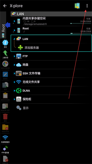 1、打開X-plore文件管理器,點擊界面右上角的三點菜單圖標(biāo)。