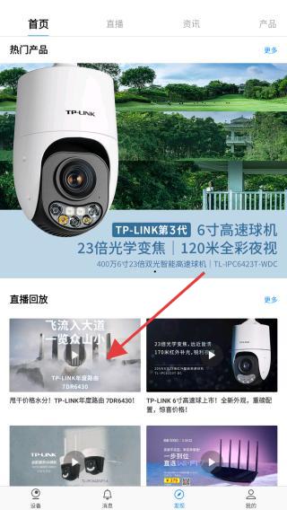 2、進(jìn)入到首頁內(nèi),向下滑動找到并點(diǎn)擊直播回放的內(nèi)容,可根據(jù)需求選擇。