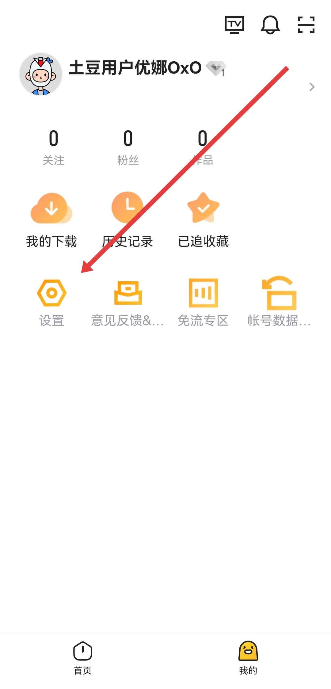 1、打開土豆視頻APP,進(jìn)入我的頁面后,點(diǎn)擊設(shè)置的圖標(biāo),進(jìn)入設(shè)置功能的界面。