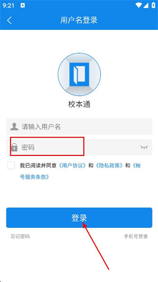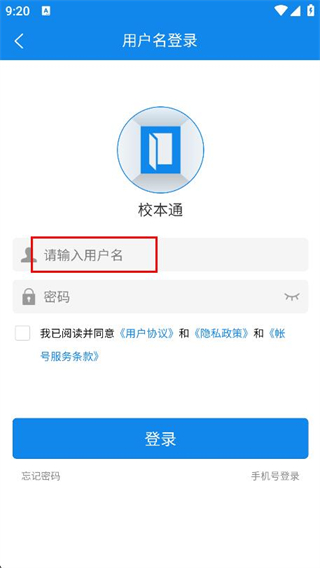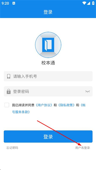 1、打開(kāi)校本通app,在登錄頁(yè)面點(diǎn)擊用戶名登錄選項(xiàng)。