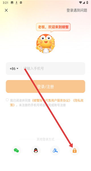 1、點(diǎn)擊“同意”,進(jìn)入螃蟹賬號(hào)APP首頁。