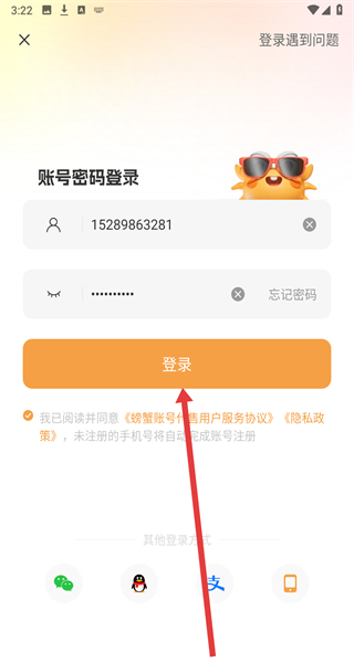4、在賬號(hào)密碼登錄界面輸入手機(jī)號(hào)碼和密碼,勾選同意協(xié)議后點(diǎn)擊“登錄”,完成賬號(hào)登錄操作。