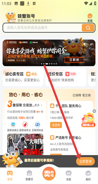 螃蟹賬號(hào)代售平臺(tái)上面你可以免費(fèi)的體驗(yàn)到更好更加優(yōu)質(zhì)的游戲帳號(hào),是一個(gè)熱門類型的游戲帳號(hào)交易以及查詢平臺(tái),也是解決了很多的用戶的一些需求,讓你可以安心的進(jìn)行交易的一個(gè)平臺(tái)!