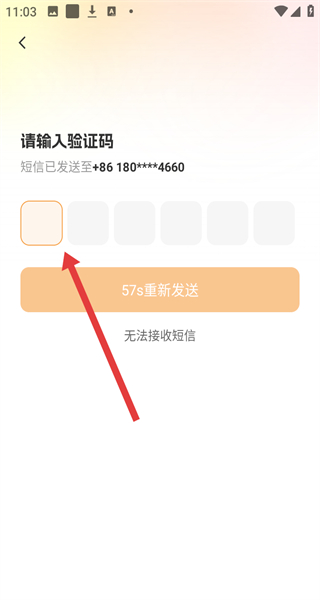 4、在驗(yàn)證碼輸入頁面輸入收到的驗(yàn)證碼,完成賬號(hào)注冊(cè)登錄操作。
