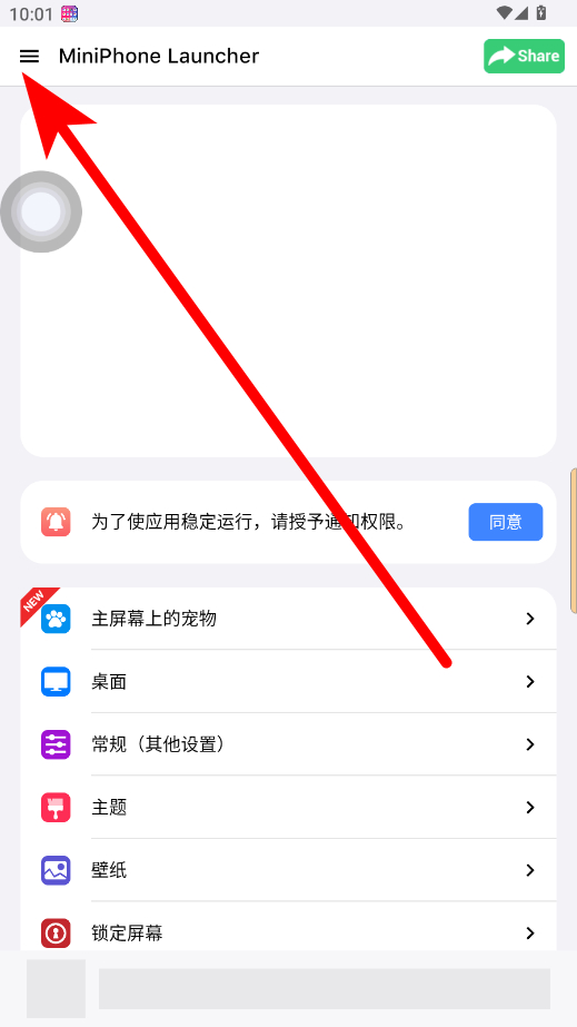 1、在手機(jī)桌面找到并點(diǎn)擊MiniPhone Launcher應(yīng)用圖標(biāo)。
