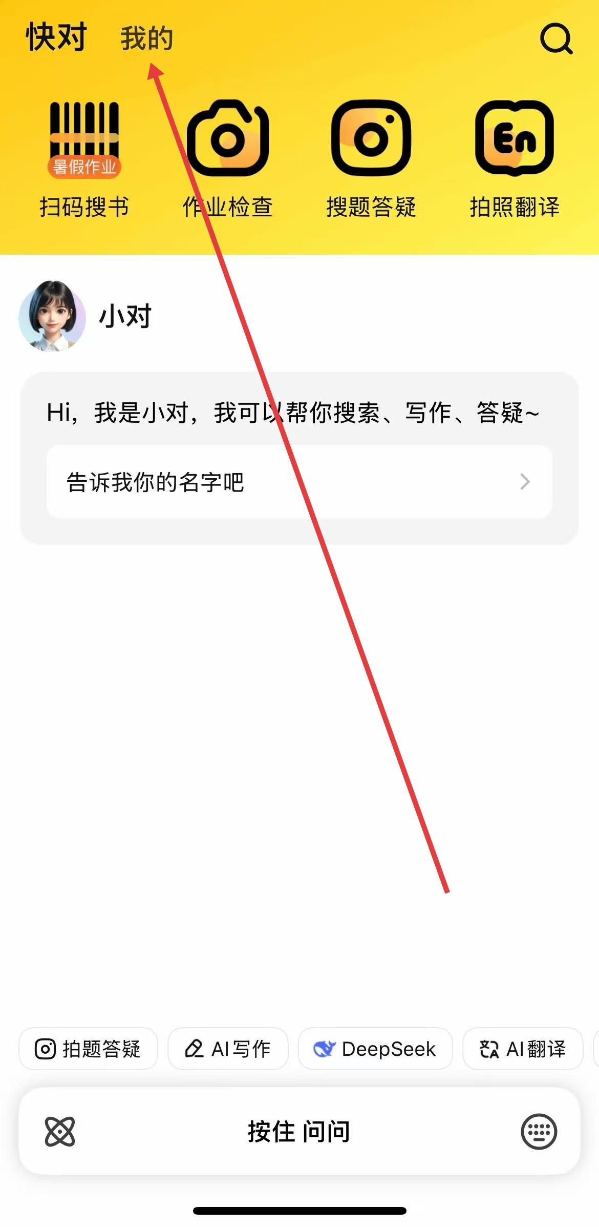 1、打開快對作業(yè)app,點擊頂部的我的選項。