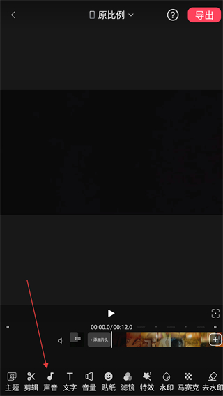 3、進(jìn)入視頻編輯的頁(yè)面內(nèi),點(diǎn)擊下方聲音的功能按鈕。