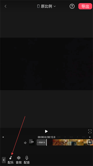 4、在聲音的界面內(nèi),用戶需再次點(diǎn)擊配樂(lè)的功能按鈕。