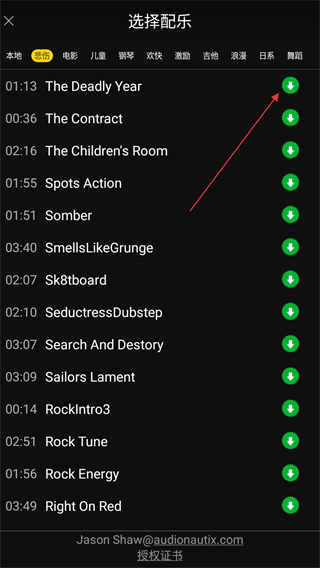 5、進(jìn)入選擇配樂(lè)的界面內(nèi),選擇并點(diǎn)擊右側(cè)下載的圖標(biāo)即可。