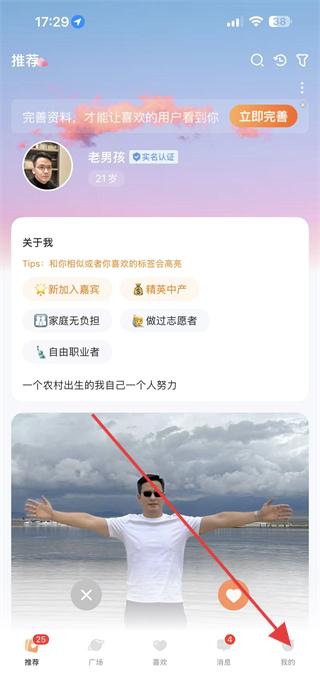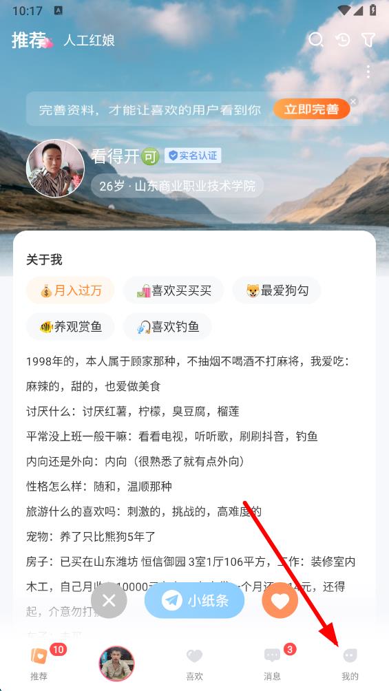 1、打開百合網(wǎng)應用,點擊底部導航欄最右側(cè)的我的,進入個人頁面。
