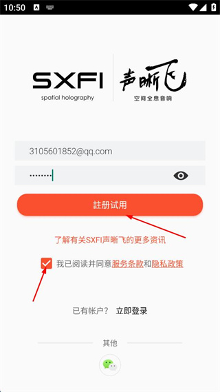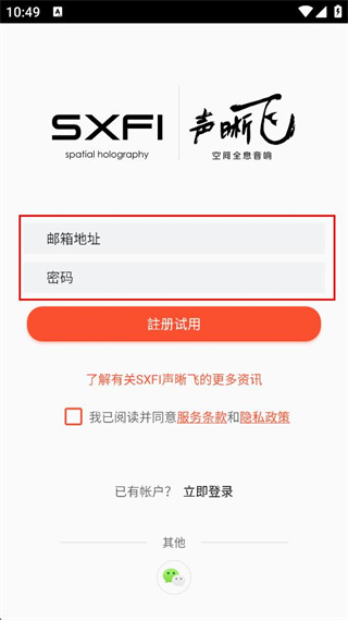 4、點擊注冊按鈕,完成注冊,可使用注冊賬號登錄SXFI聲晰飛應(yīng)用。