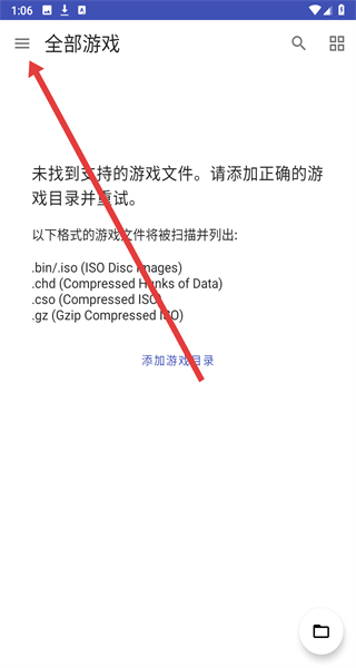 2、進(jìn)入“全部游戲”頁(yè)面后,點(diǎn)擊左上角菜單按鈕,展開功能菜單。
