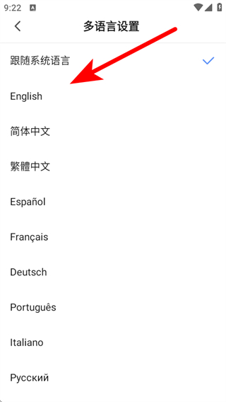 4、在頁(yè)面,選擇English等所需語(yǔ)言,即可完成語(yǔ)言功能的設(shè)置。