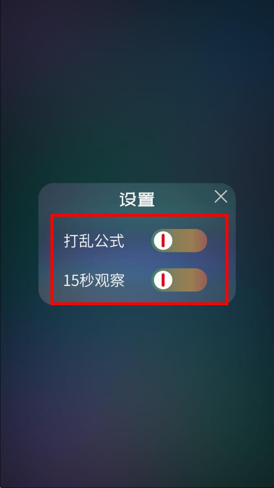 3、可按需開啟或關閉打亂公式與15秒觀察等功能選項,在設置中調整好所需選項后,返回計時器頁面。