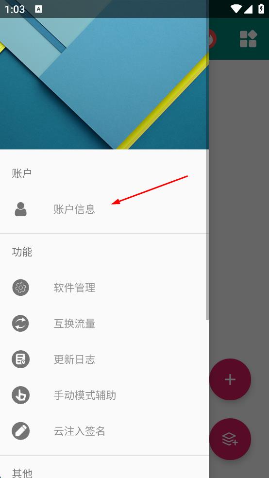 1、打開云注入APP,點(diǎn)擊頁(yè)面左上角的三條橫線菜單圖標(biāo),展開側(cè)邊菜單。