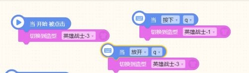 4、設(shè)置按下開始鍵的時(shí)候顯示普通造型,按下q鍵的時(shí)候切換成攻擊的造型。