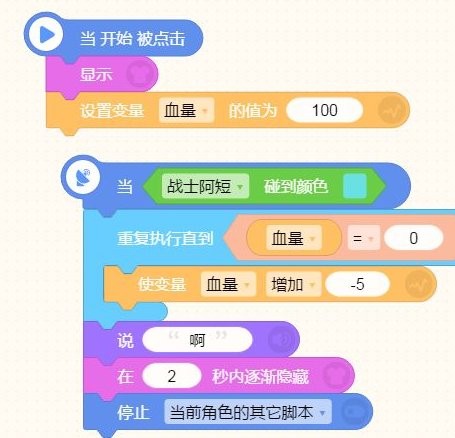 12、給另外一個(gè)英雄設(shè)置程序,要求血量為零時(shí),逐漸消失,然后停止程序運(yùn)行即可。
