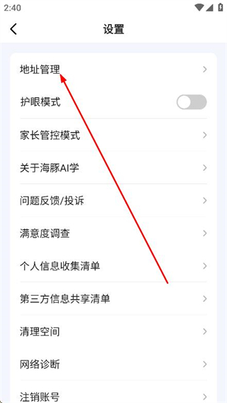 3、進入設置頁面后,找到并點擊地址管理選項。