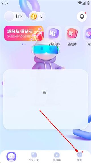1、打開海豚AI學,點擊底部導航欄我的選項。