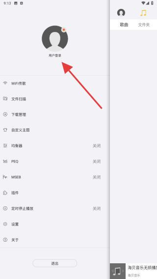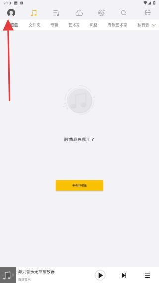 1、啟動海貝音樂APP,在首頁的左上角點(diǎn)擊人像的圖標(biāo)。