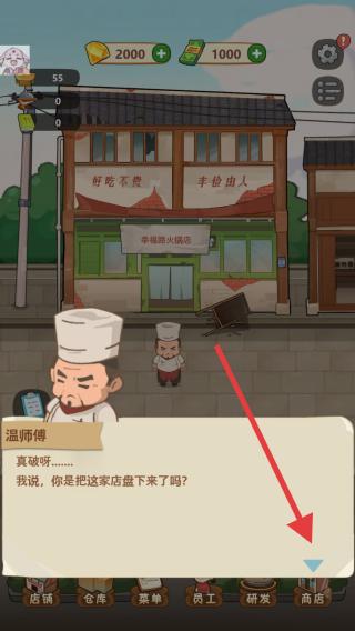 2、點(diǎn)擊剛剛盤下的店鋪,進(jìn)入到店鋪內(nèi)進(jìn)行清理,在游戲中很多方面都可以影響客人對我們的評價(jià),衛(wèi)生或者上菜速度。