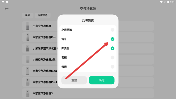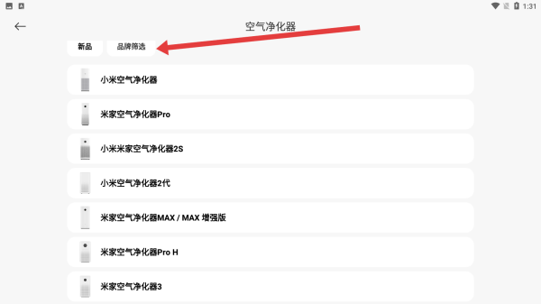 2、在空氣凈化器型號(hào)添加頁(yè)面中,可以點(diǎn)擊上方的品牌篩選按鈕。