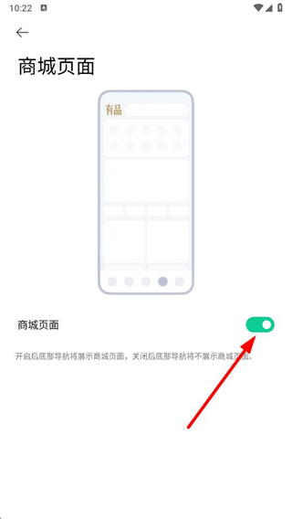 4、在商城頁(yè)面設(shè)置中,點(diǎn)擊商城頁(yè)面右側(cè)的開(kāi)關(guān)按鈕將其關(guān)閉。