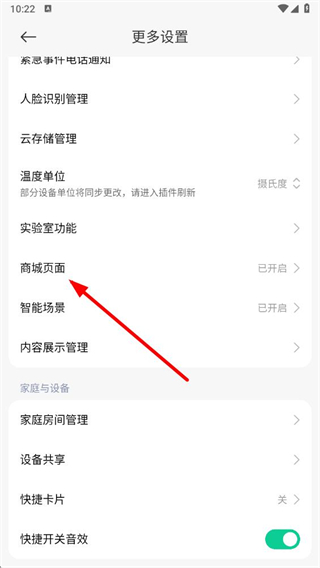 3、進(jìn)入更多設(shè)置頁(yè)面后,點(diǎn)擊商城頁(yè)面選項(xiàng)。