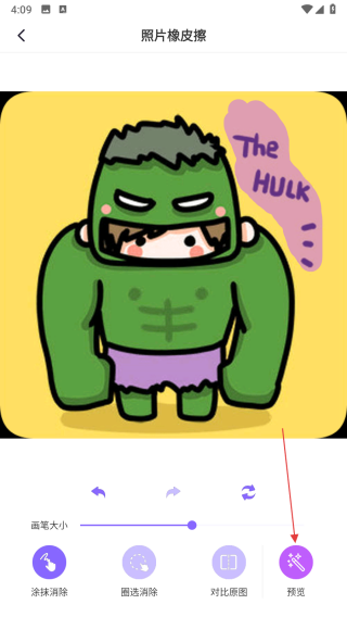 3、在編輯界面,根據(jù)需求選擇涂抹消除或圈選消除方式,調(diào)整畫筆大小后,對(duì)圖片中需擦除的物體進(jìn)行操作。