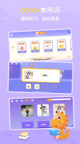 4000+單詞庫專項(xiàng)練習(xí),對(duì)標(biāo)國內(nèi)教學(xué)要求。含108啟蒙必備詞、220高頻詞、300+小學(xué)必備、1000+KET詞庫、2000+PET詞庫。2000+拓展詞庫。通過“學(xué)、練、認(rèn)”科學(xué)學(xué)習(xí)路徑設(shè)計(jì),讓兒童牢記4000+必備詞。